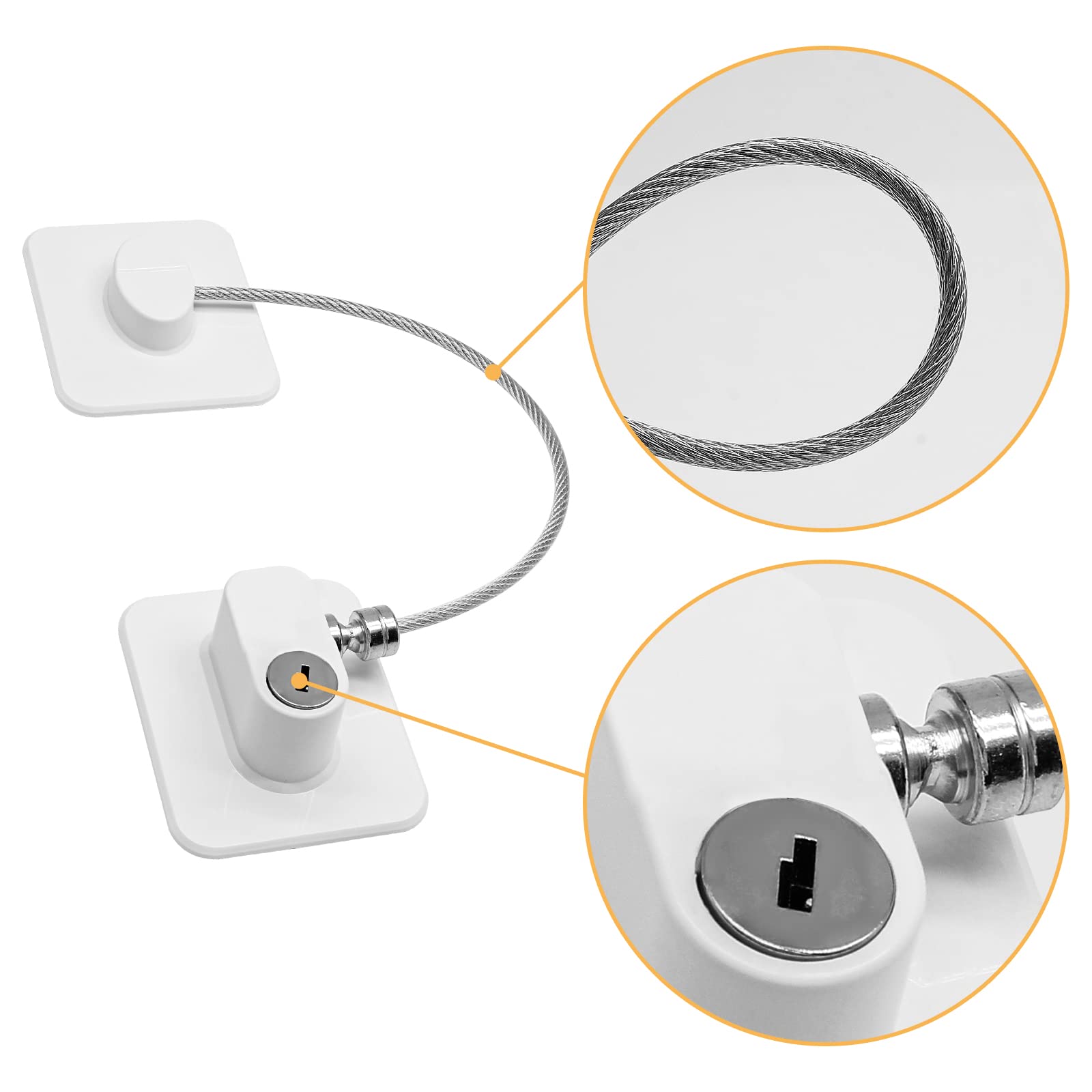 【نسخة مطورة من أعلى جودة】 قفل الثلاجة الخاص بنا مجهز بوسادة لاصقة كبيرة عالية الجودة (2.7 انش × 2.7 انش)، والتي تم اختبارها لتكون قوية للغاية ويمكن إعادة استخدامها لعدة مرات. هيكل قفل الثلاجة مصنوع من مادة بلاستيك ABS، أسطوانة قفل من الستانلس ستيل 304، وسطح الكيبل مصنوع من خليط معدني مجلفن كهربائي، والذي لا يسقط الطلاء ومتين.