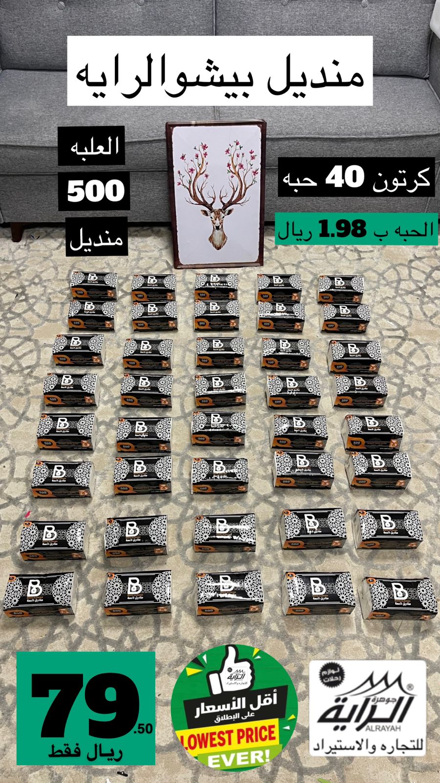منديل بيشو الرايه العلبه 500 منديل